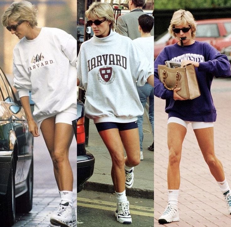 we’re starting the day by waking up a tad early. we need time to get ready and grab a pastry before sunrise. we’re channeling our inner princess Diana to get dressed. pull on your comfiest oversized sweatshirt and your softest biker shorts or leggings. we’re letting our skin breathe, no makeup for now.