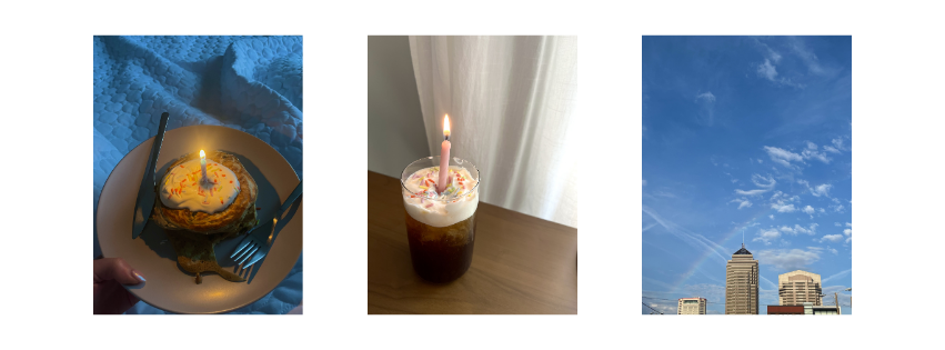 it was so special and everything I could of hoped for. This is the first birthday I’ve got to spend with my boyfriend in a few years and he really went above & beyond for the pinterest mood board with birthday pancakes & coffee in bed (each topped with whipped cream and a candle hehe). We went to one of my favorite coffee spots & there was a rainbow while waiting, then had dinner at home. That weekend I got to see my family and friends to celebrate, which included the tradition of a homemade cake of choosing (hello cardamom, orange, & strawberry! thanks mum), dinner, and a jazz show. 25 feels special to me and I don’t think I could’ve started it any better.